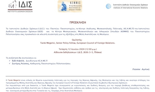10 Ιουνίου 2024Εκδήλωση-συζήτηση με θέμα: Η Ροτζάβα στον απόηχο των εξελίξεων στη Μέση Ανατολή | 16 Απριλίου 2024